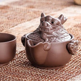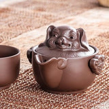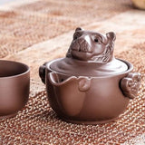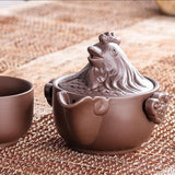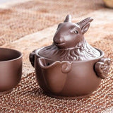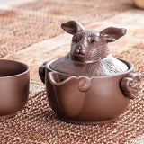 Adorable Gaiwan Animal décliné en 12 versions, une pour chaque animal du zodiaque chinois, avec sa petite tasse assortie. Tigre, Buffle, Serpent, Cheval, Coq, Chien, Dragon, Lapin, Cochon, Rat, Chèvre et Singe, ils sont tous là ! Retournez l'animal couvercle, placez votre tasse, vous avez un petit service à thé individuel compact à emporter partout. Une 2ème petite tasse en argile est proposée en option.