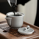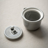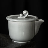Téléportez-vous en quelques secondes au Japon avec cette petite théière japonaise qui répond au doux nom de Hohin. C'est un kyusu dépourvu de poignée, parfait pour déguster le thé vert, thé blanc, thé jaune et autres thés fragiles préférant de faibles températures d'infusion. Cette petite théière est en porcelaine gris pâle, tout simplement ma-gni-fique.