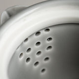Filtre : Porcelaine, type multi trous, intégré à la théière devant le bec verseur