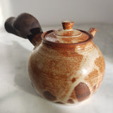 Ce kyusu de 230 ml a été fabriqué avec un grès riche en minéraux qui produit un aspect texturé moucheté subtil. L’extérieur est fini avec un émail shino.