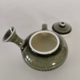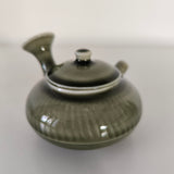 Magnifique Kyusu Celadon né des mains de la talentueuse artiste belge Inge Nielsen. Il se décline en 3 variantes, légèrement différentes, chacune unique. Munie d'un manche latéral ergonomique, en porcelaine fine, au versement optimal, c'est une très petite et très belle théière de style japonais, à chérir au creux de votre main.