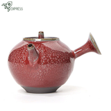 Un délicat petit Kyusu en Porcelaine rouge pour vous envoler vers le Japon à chaque infusion de thé. Sa céramique sans mémoire et son bel émail tenmoku rouge lui permettent d'être polyvalente, vous pourrez donc utiliser cette jolie théière pour tous vos thés, même les plus fragiles. Un petit bijou d'artisanat.