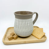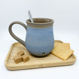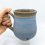 Pour boire votre thé ou votre café dans un beau et grand mug en soutenant l'artisanat français, choisissez un Mug Made in France de notre collection. Chaque exemplaire de cette grande tasse en grès est unique, fabriquée sur le tour d'une potière dans le sud de la France. La surface bleue ou blanche craquelée s'inspire de la nature et des textures brutes de la terre. L'extérieur du mug est un peu rugueux, mais agréable au toucher. L'intérieur du mug est recouvert d'un émail alimentaire incolore et brillant.