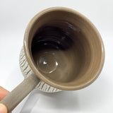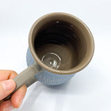 Ce mug en céramique est l'œuvre de Gosha. Son voyage avec la terre a commencé en Pologne, lorsqu'elle a participé à des ateliers du soir pendant ses études de maîtrise en pédagogie à l'université de Poznan. Après avoir obtenu sa maîtrise, elle a suivi pendant 2 ans la formation de l'École des arts et métiers de Wola Sekowa complétée par un diplôme en céramique, broderie à la main et osier (2008-2010). En outre, en 2011, elle a obtenu le titre d'artisan en céramique de la chambre des métiers de Rzeszow. Elle a ensuite travaillé et vécu en Belgique pour une grande marque de céramique, une entreprise familiale qui produit et exporte des jardinières en céramique fabriquées à la main dans tous les coins du monde. Sa connaissance des processus de création, de production et de vente des produits en terre s'est ainsi enrichie, complétée par une autre école professionnelle de céramique à Bruges (2015-2018), où elle a obtenu un certificat d'entrepreneur de poterie agréé. Actuellement, elle vit dans le sud de la France où elle travaille comme artiste indépendante.