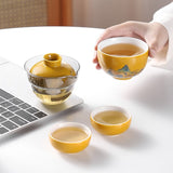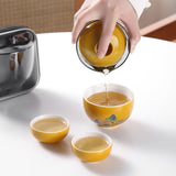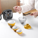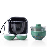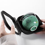 Voici un Petit Service à Thé de Voyage pour 1 ou 2 personnes en verre et porcelaine de Chine. Nomade, compact et pratique, il se glisse dans vos bagages pour vous accompagner partout dans vos dégustations en infusions multiples. Le service est composé d'une petite théière en verre sans poignée avec couvercle en porcelaine troué qui sert de filtre, de 2 petites tasses, 1 bol plus grand et un chiffon. L'ensemble est logé dans une sacoche de transport rigide. 3 couleurs au choix.