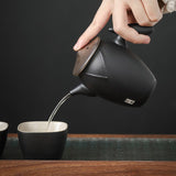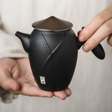 Cette élégante Petite Théière Japonaise en porcelaine noire a mis son kimono pour vous accompagner dans la découverte de nouveaux-thés ! Grâce à la céramique sans mémoire, vos thés et tisanes pourront se succéder en infusions multiples sans que la théière ne conserve les arômes des précédentes. Grâce à son design de style japonais original et à son émail noir et doré qu'on croirait métallique, c'est autant un magnifique objet de décoration qu'une petite théière pratique.