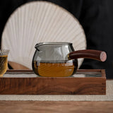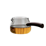 Cette jolie verseuse en verre de style japonais disponible en version claire ou fumée est un Pichet Refroidisseur, appelé Yuzamashi au Japon. Il est destiné à recevoir l'eau bouillante pour la refroidir avant de la verser sur les feuilles des thés fragiles (gyokuro par exemple). Vous pouvez également y verser le thé ayant déjà infusé dans un kyusu afin de le faire refroidir avant dégustation. Vous pouvez poser sur le dessus du pichet un petit filtre panier ou un filtre feuille pour retenir les quelques fragments de feuilles de thé qui s'échapperaient de la théière et répartir ensuite harmonieusement et précisément le thé dans la ou les tasses grâce à la poignée latérale en bois pratique et ergonomique.