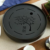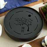 Très joli Plateau à Thé Chinois en Céramique et métal. Il est doté d'un réservoir et sera idéal pour la préparation de votre thé au Gong Fu Cha. Disponible en 2 diamètres, 2 coloris, 4 motifs.