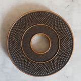 Protégez efficacement et élégamment votre table avec notre Repose Théière en Fonte Iwachu orné du motif arare. Il est magnifique, proposé en plusieurs coloris foncés, il est fabriqué au Japon, et son diamètre de 14cm est adapté à la quasi totalité des théières et bouilloires, qu'elles soient en fonte ou non.