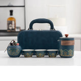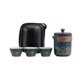 Ce magnifique Service à Thé Chinois Nomade est original et pratique. Il est composé dans sa version simple d'une petite théière sans poignée avec filtre amovible et de 3 tasses assorties. La version plus complète comprend également une boîte à thé. Le tout est en céramique de qualité et protégé dans un étui ou une valisette. Bon voyage !