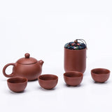 Vous rêvez de préparer votre thé au Gong-Fu Cha dans un authentique Service à thé en Terre Cuite de Yixing ? Heureux hasard (si le hasard existe), ce service à thé pour 4 personnes est là pour exaucer votre vœu. La théière en argile, les tasses et le pot à thé sont fabriquées avec la célèbre terre chinoise qui mémorise les arômes de votre thé au fil des infusions. Ce service au bon rapport qualité/prix est fourni dans une housse rigide de transport pour boire votre thé au Gong Fu Cha où vous voulez !