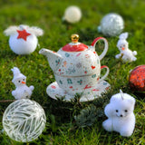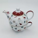 Plongez vous (et votre scone) dans l'ambiance de Noël en dégustant votre votre thé ou tisane dans ce Service à Thé Noël pour une personne. C'est une théière solitaire ou égoïste, un service à thé individuel composé d'une théière avec tasse incorporée et soucoupe assorties. Le Père Noël, ses rennes et autres motifs de Noël ornent ce joli service en porcelaine fabriqué à la main en Allemagne.