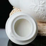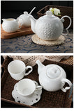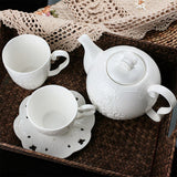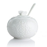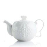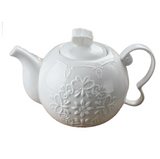 Une forme ronde élégante, une anse en aile de papillon, un beau motif en relief, cette théière est simplement superbe. Pour ne rien gâcher, elle est accompagnée en option du pot à lait et du bol à sucre assortis, avec son couvercle et sa cuillère pour former un élégant Service à Thé en Porcelaine Blanche. It's Tea Time !