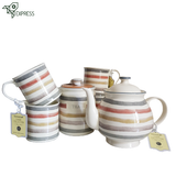 Dépliez une belle nappe blanche sur la table du jardin ou directement sur l'herbe et servez le thé grâce à ce beau Service à Thé Traditionnel campagnard anglais. Couleurs pastel, style rétro, ce service est composé d'une grande théière d'1,4L, de 4 tasses et sa boîte à thé assortie. Le tout est en céramique neutre et sans mémoire pour tous les types de préparations infusées. Vous pouvez également choisir la théière seule.