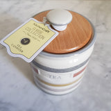 Matière : Terre cuite - Céramique - Faïence émaillée. Boîte à thé avec couvercle en bois (bambou) et silicone
