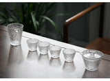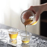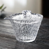 Pour profiter pleinement du spectacle et de la coloration de l'eau au cours de l'infusion de votre thé vert, voici un Shiboridashi en Verre. Ce type de kyusu (théière japonaise) est dépourvu de poignée et de filtre, les feuilles profitant de l'espace de toute la théière pour se déployer et étant retenue par le couvercle tandis que le thé est guidé vers la tasse par le bec. Un pichet et de petites tasses sont proposés en option.