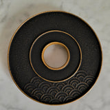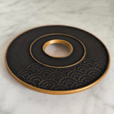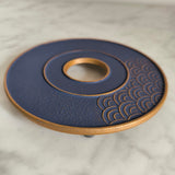 Pour poser votre bouilloire qui sort du feu, pour protéger votre table d'une théière chaude, ce Sous-plat pour Théière en fonte japonaise Iwachu repose fièrement sur ces 3 pieds isolés. Orné du motif de vague seigaiha, c'est un repose-théière assorti aux théières en fonte modèle Wave du fabricant japonais. 2 coloris disponibles