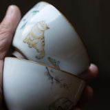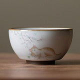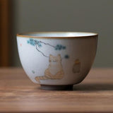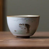 Voici une bien jolie Tasse Chat qui se décline en plusieurs motifs et 2 contenances. Un style vintage, un dessin poétique, une petite contenance adaptée à la dégustation du thé au Gong Fu Cha, ces tasses ont tout pour plaire. Elles sont assorties à la théière, au yokode kyusu, au gaiwan, au pichet, au filtre et au plateau si vous souhaitez vous constituer le plus mignon des services à thé.