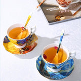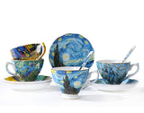Inspirées de tableaux du célèbre peintre néerlandais, ces ensembles sont composés d'une tasse à thé, sa soucoupe et sa cuillère assorties, le tout en porcelaine fine chinoise de toute beauté. Goûtez au plaisir de déguster votre thé dans une Tasse Van Gogh, un magnifique objet de décoration en plus d'une tasse polyvalente grâce à la porcelaine sans mémoire.