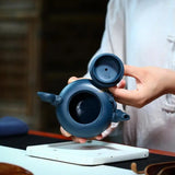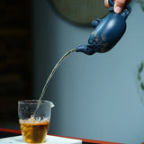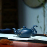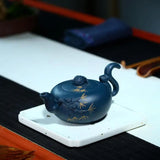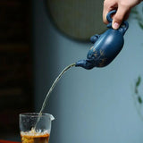 Cette Théière Bleue en Terre de Yixing est une pure beauté. Cet argile chinois est utilisé pour façonner des théières à mémoire qui subliment au fil du temps le goût des thés qui leur sont dédiés. Un adorable écureuil forme la poignée de cette magnifique théière façonnée à la main. Une théière de qualité à réserver à un seul type de thé, et un objet de collection !