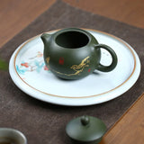 Cette petite Théière Chinoise en Terre Cuite de Yixing est de forme ronde dite Xi Shi. C'est une excellente théière pour déguster le thé au Gong Fu Cha. La terre de Yixing étant poreuse, cette théière est dite à mémoire, ce qui signifie qu'il faudra la réserver à un seul type de thé.