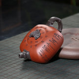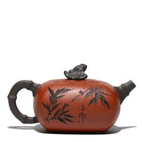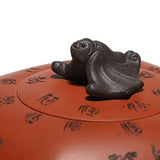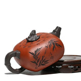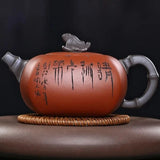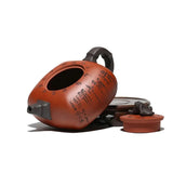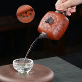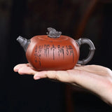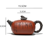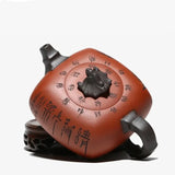 Voici une magnifique Théière en Terre Cuite gravée pour préparer votre thé au Gong-Fu Cha. Elle est en argile de Yixing, célèbre terre chinoise utilisée pour la fabrication des théières à mémoire, dont la légère porosité vous engage à la réserver à un seul type de thé.