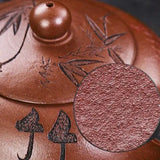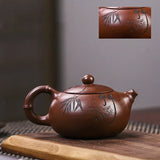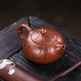 Cette Théière en Terre Cuite Asiatique est façonnée avec de l'argile de Yixing, une terre poreuse en provenance de la célèbre province chinoise. Elle est finement gravée à la main de motifs végétaux traditionnels et elle bonifiera avec le temps le thé que vous lui aurez fait l'honneur de lui dédier (théière dite à mémoire).