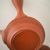 Théière japonaise traditionnelle en argile naturelle. Non vernie à l'intérieur, réagit au contact de l'eau et du thé pour en révéler tous les arômes.