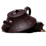Cette Théière "Fait Main" est en terre de Yixing, province chinoise célèbre pour ses théières poreuses dites à mémoire, qui absorbent une partie des arômes du thé infusé et les restitue au fil des infusions, se "culottant" avec le temps. Voici un beau modèle vert gravé de qualité muni d'un filtre boule multi-trous, d'un couvercle ajusté et d'un bon bec verseur. Une théière pour laquelle il vous faudra choisir un seul type de thé.