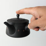L'aspect poli sans être émaillé est du au polissage du Kyusu avant cuisson avec une spatule métal ou un tissu, pour laisser l'argile parler d'elle-même.