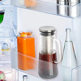 Ils se dégustent en toute saison, et plus particulièrement en été… les thés glacés ! Cette Théière pour Infusion à Froid est l'outil parfait pour préparer un savoureux thé ou café glacé de la meilleure des manières. C'est une haute carafe en verre avec infuseur profond en acier inoxydable. Grand volume et filtre qui descend jusqu'au fond de la carafe, diamètre adapté à la porte du réfrigérateur, cette théière en verre graduée est très pratique. Le tamis d'une extrême finesse autorise l'infusion de tous les thés, tisanes, rooibos et même le café, en infusion à froid mais aussi à chaud puisque la théière peut être utilisée comme bouilloire. 2 grands volumes au choix.