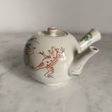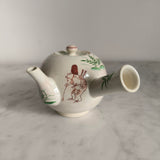 Connaissez-vous le Chōjū-jinbutsu-giga ? C'est un rouleau peint japonais datant du XIIe siècle. Traduit littéralement par "Caricatures d'animaux", ce rouleau d'images du temple Kozanji, le plus célèbre du Japon, est attribué au moine Toba Sōjō (sans certitude). Cette délicate Théière Japonaise Ancienne en Porcelaine émaillée en reprend le motif. Apprécions le temps du thé avec ces adorables lapins et grenouilles ! L'artisanat japonais ancien sur une théière neuve entièrement faite à la main.
