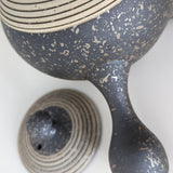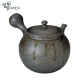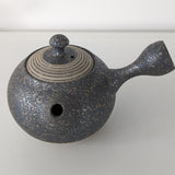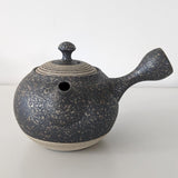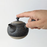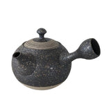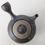 Lorsque cette Théière Japonaise Artisanale est dans la lumière, on la croirait pailletée d'argent. Ce kyusu est un modèle original, contrariant vos perceptions en vous faisant toucher la douceur de la céramique lorsque vous croiriez rencontrer la froideur du métal. Le motif sur le corps de certaines variantes de cette théière a été réalisé en appliquant une ficelle imbibée d'une solution d'engobe. Des théières haut de gamme fabriquées à Tokoname au Japon par Fujita Tokuta.