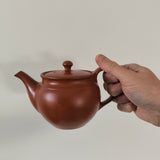 L'aspect poli sans être émaillé est du au polissage du Kyusu avant cuisson avec une spatule métal ou un tissu, pour laisser l'argile parler d'elle-même. Kyusu cuit en oxydation (argile rouge)