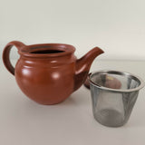 Vous cherchez un compromis entre une authentique théière japonaise en argile de Tokoname et une théière avec panier inox facile à retirer pour stopper l'infusion lorsque vous le souhaitez sans avoir à vider la théière. Et bien ne cherchez plus, la voilà. Cette Théière Japonaise avec Filtre est fabriquée au Japon avec la fameuse argile rouge shudei réputée améliorer la dégustation du thé vert et elle est équipée d'un panier infuseur en acier inoxydable.