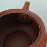 Pour vous, cette Théière Japonaise en Céramique s'est mise sur son 31 ! Elle a revêtu sa plus belle robe rouge en terre de Tokoname riche en fer, a disposé sa poignée latéralement pour une prise en main facile, a placé devant son bec un filtre en terre d'une grande finesse pour retenir efficacement les petits morceaux de feuilles de thé, et enfin elle porte de discrètes spirales, traces de son passage entre les mains du potier sur son tour. La voilà prête à vous accompagner dans toutes vos dégustations !