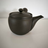 Les théières japonaises sont le plus souvent de petite capacité pour pouvoir réaliser des infusions multiples de thé vert. Si vous souhaitez une Théière Japonaise de Grande Contenance, alors vous ne pourrez qu'apprécier ce modèle disponible en 2 coloris selon l'atmosphère choisie lors de la cuisson de l'argile. C'est une théière en terre de Tokoname de plus de 600ml avec poignée latérale pour un versement ergonomique et filtre en terre très efficace devant le bec.