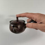 L'aspect poli sans être émaillé est du au polissage du Kyusu avant cuisson avec une spatule métal ou un tissu, pour laisser l'argile parler d'elle-même.