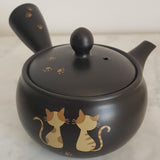 Théière de qualité fabriquée au Japon à Tokoname ET mignonne, c'est possible ! Pour preuve cette belle Théière Japonaise Motif Chat ! La terre volcanique japonaise qui la compose est très réputée pour la dégustation du thé vert. Dotée d'un bon équilibre, d'un excellent versement, d'un filtre intégré très fin, cette théière et son duo de chat nous ont séduits.