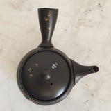 Pour des couleurs différente, le potier pulvérise sur le kyusu un mélange d'argile et de pigments colorés naturels (= Char-gake). L'aspect poli sans être émaillé est du au polissage du Kyusu avant cuisson avec une spatule métal ou un tissu, pour laisser l'argile parler d'elle-même.