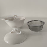 Cette Théière Japonaise en Porcelaine Blanche répond au doux nom de Hohin. C'est un kyusu dépourvu de poignée, parfait pour déguster le thé vert, blanc et autres thés fragiles préférant des températures d'infusion modérées. Cette petite théière est munie d'un double filtre : l'un est à trous intégré au niveau du bec, l'autre est un panier en acier inoxydable pour les thés verts fortement étuvés. Un excellent rapport qualité-prix.