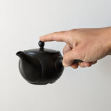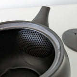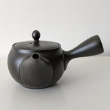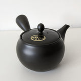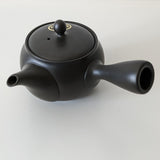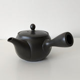 La théière emblématique du Japon est le yokode kyusu, poêlon en céramique doté d'une poignée latérale. Cette magnifique Théière Japonaise est en Terre de Tokoname, munie d'un filtre intégré devant son bec verseur. Forme simple et équilibrée, en argile rouge riche en fer cuite en réduction pour devenir noire, c'est une théière d'excellent rapport qualité prix.