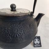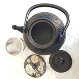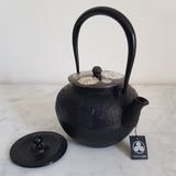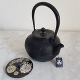 Cette Théière Japonaise est un Tetsubin en fonte non émaillée. La combinaison de 2 arts traditionnels du Japon : la fonte de Nanbu et la céramique de Kiyomizu - Kyoto, donne naissance à cette bouilloire en fonte munie d'un couvercle en céramique au motif fleuri, et d'un filtre inox amovible. Une théière en fonte d'exception qui vieillira avec vous et pourra être transmise à votre descendance.