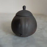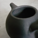 Jiří Duchek est un céramiste tchèque de renommée mondiale. Il a façonné cette Théière avec tout son talent et nous sommes très heureux de pouvoir vous la proposer. Une grande sérénité se dégage de cette théière que Jiri a appelée "the Black Beauty". La couleur noire de la théière est due à la méthode de cuisson à faible teneur en oxygène dans un four à bois autour de 1280°C. Cette théière aura tendance à supprimer les tons vifs du thé et à absorber la douceur, elle convient donc aux thés plus rugueux et robustes, surtout les thés noirs, rouges et puerh. Un objet à chérir et à faire vieillir avec vous.