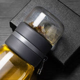Stop aux sachets de thé sans saveur, finies les bouteilles en plastique de boissons industrielles ! Grâce à cette Théière nomade en Verre, à vous les infusions savoureuses de qualité en vrac préparées au boulot, dans votre voiture, à la salle de sport, en voyage... Simple à utiliser, cet infuseur portable muni d'une lanière de transport, en quelques étapes et 2 tours de poignet, vous préparera un thé justement infusé partout grâce à la séparation facile des feuilles et de l'eau.