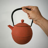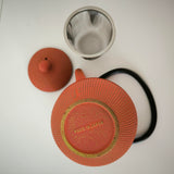 Une lumineuse Théière Orange en Fonte pour éclairer vos moments de thé. Ce Nambu Tekki, fabriqué de manière traditionnelle puis émaillé à l'intérieur, nous vient de la ville d'Oshu au Japon. Un tetsu kyusu d'excellente qualité à votre service pour toutes vos dégustations.