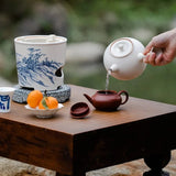 Voyagez au Japon en dégustant votre thé avec notre Théière Paysage. Un décor délicatement peint sur une théière en céramique. Vous apprécierez sa forme, la beauté paisible du motif, la prise en main agréable des 2 modèles proposés : avec anse en rotin (1L) ou poignée latérale (480ml). Un réchaud à théière assorti est également disponible en 2 modèles.