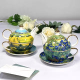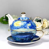 On peut conjuguer l'amour de l'art et l'amour du thé, la preuve avec notre Théière Peinture au motif inspiré entre autres d'œuvres célèbres de Vincent Van Gogh comme "La nuit étoilée". Chaque théière est en porcelaine Bone China soigneusement décorée d'un motif aux couleurs vives et durables.