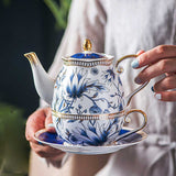 Décorée de magnifiques motifs floraux bleus et blancs, en porcelaine chinoise Bone China fine et délicate, cette Théière en Porcelaine Anglaise à Fleurs est une superbe théière solitaire, appelée aussi Tea For One. It's Tea Time !