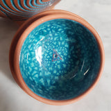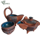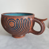 Fans inconditionnels du travail de Katerina et Grégory, nous sommes très fiers de vous proposer cette sublime Théière Russe en différents types de service à thé : style anglais de grande contenance avec ses 2 tasses assorties, ou style japonais avec une verseuse et 2 petites tasses assorties. Vous admirerez comme nous le travail d'orfèvre réalisé sur toute les surfaces, tout comme la couleur bleu azur de l'émail qui recouvre l'intérieur des pièces. Munie d'un filtre intégré devant son bec verseur et en grès émaillé neutre et sans mémoire, c'est une théière polyvalente autant qu'un objet d'art et de décoration absolument époustouflant.